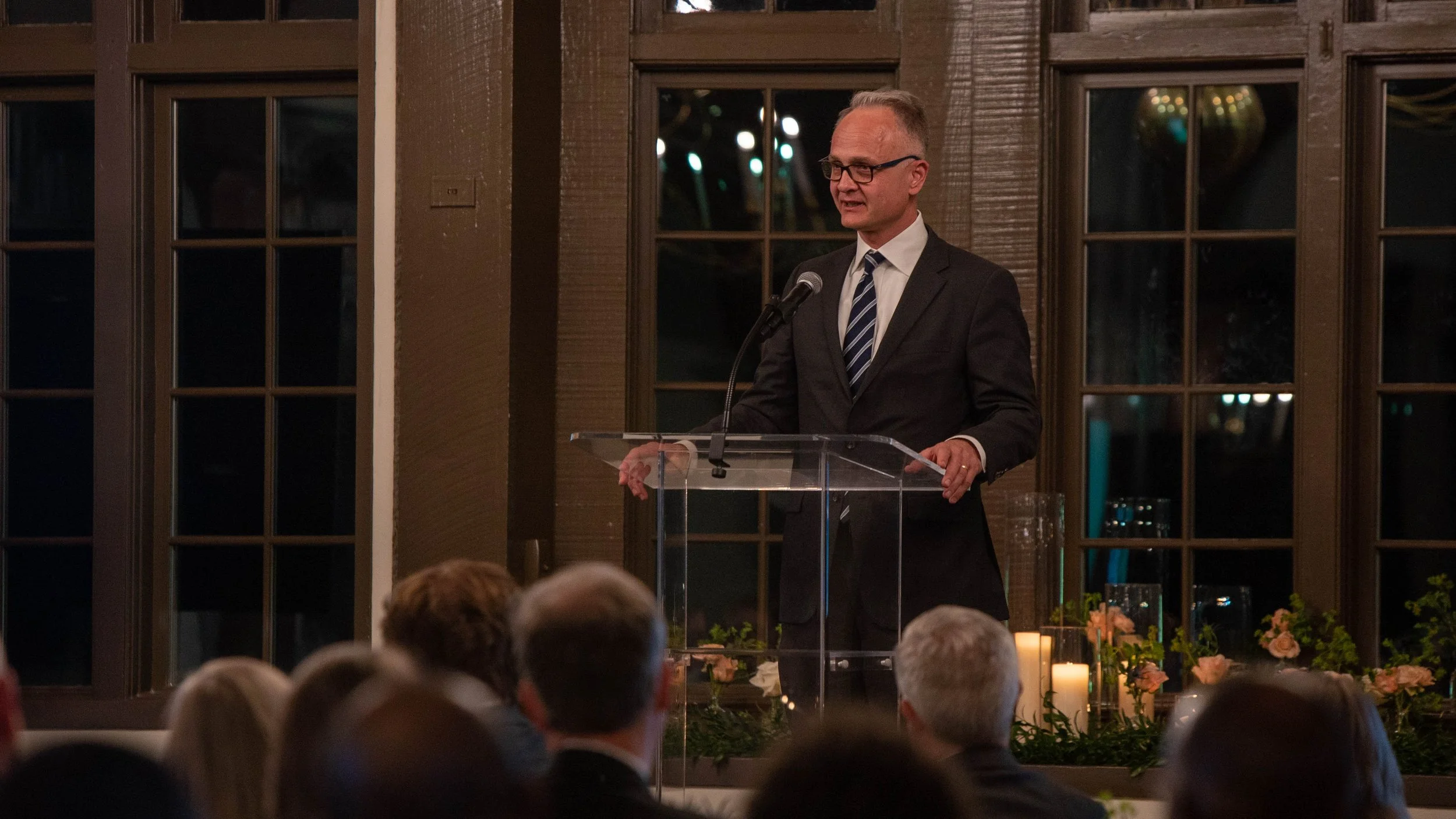 President Emeritus Derek Halvorson speaks at his celebration dinner back in March 2023.